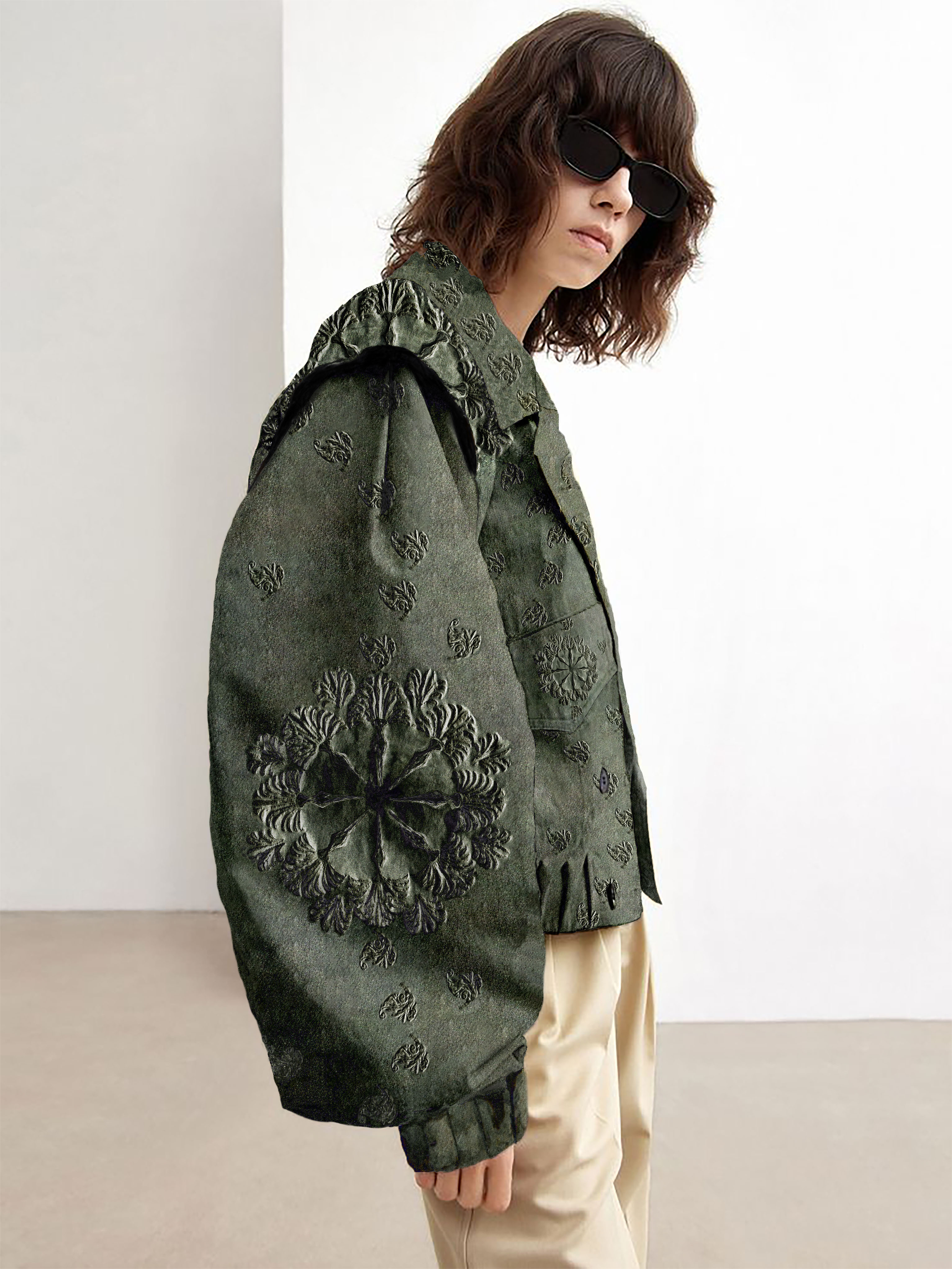 An outerwear collection that draws inspiration from the artistry of garden design. Each piece translates the forms, palettes, and surfaces found in cultivated landscapes — from the structured rhythm of hedges to the organic flow of climbing vines, from the muted tones of stone pathways to the vibrant bursts of seasonal blooms. These designs merge tactile richness with contemporary silhouettes, creating designs that feel both grounded in nature and elevated in aesthetic.