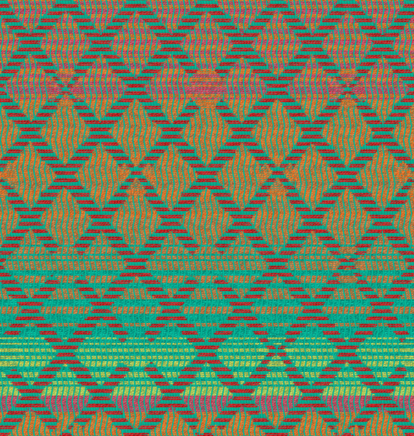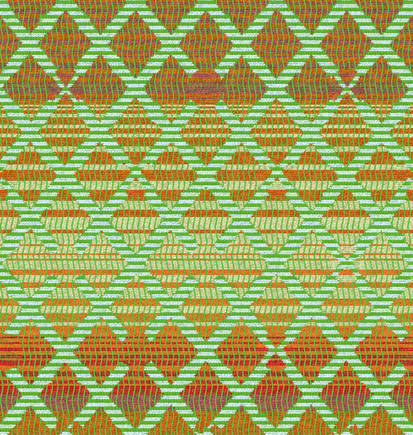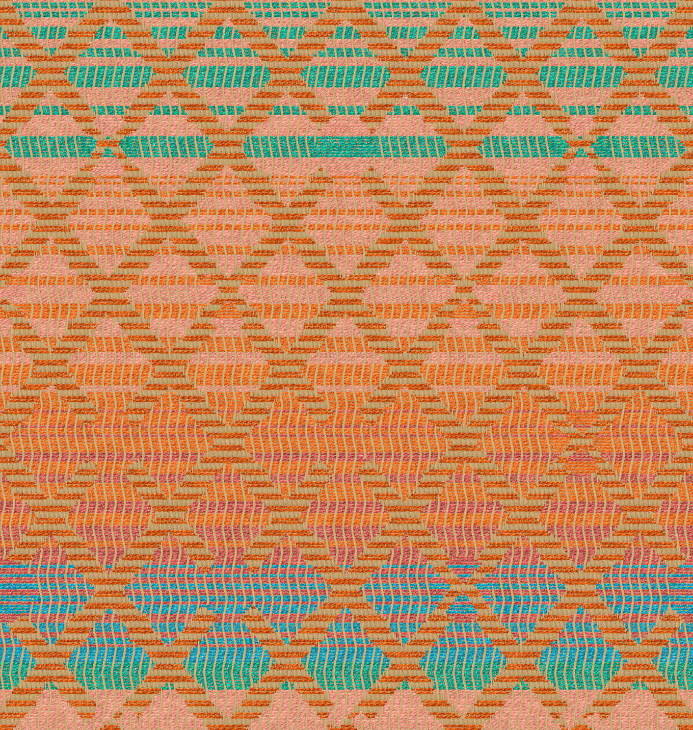 Layered geometry meets woven color. Diagonal and linear grids interplay across multiple colorways, giving the design an exuberance appeal.